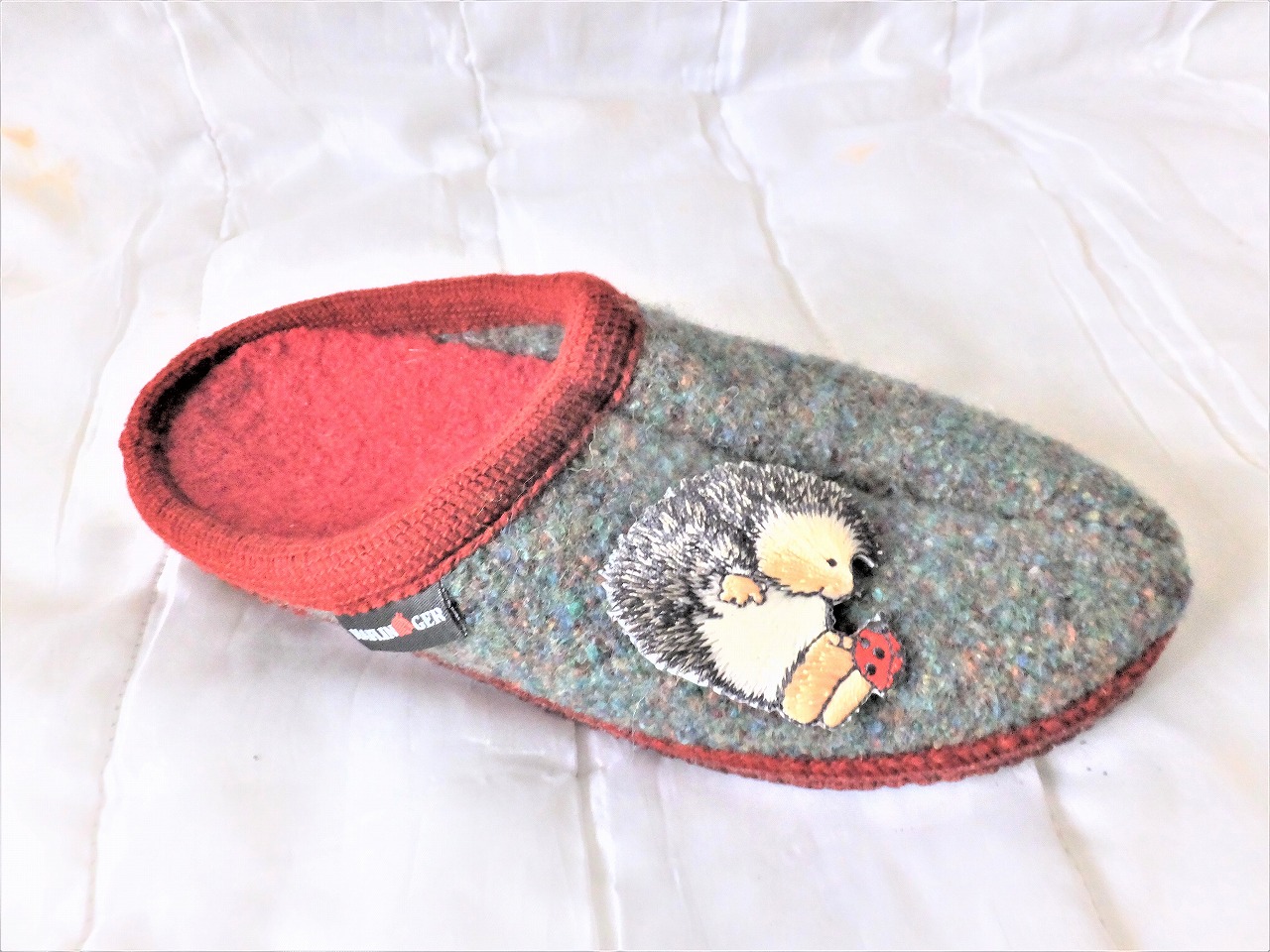 変形性股関節症・変形性膝関節症など、左右の脚の長さが違う方へ室内履きのご案内です。 このハフリンガーの室内履きは、暖かく通気性の良いニューウール100%で足裏のアーチを支える仕組みになっています。お料理等長時間の立ち仕事もかなり楽になります。 又このようにワッペンをつけると、世界に一つだけのオリジナルになります!